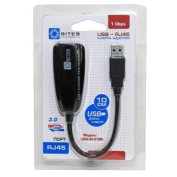 384097 5bites UA3-45-01BK Кабель-адаптер USB3.0 -> RJ45 10/100/1000 Мбит/с, 10см