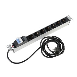 079735 ЦМО Блок розеток Rem-16 с авт. 16А, 7 Shuko, алюм., 19", шнур 3 м. (R-16-7S-A-440-3)