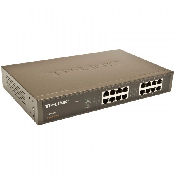 Неуправляемые коммутатор TL-SG1016 от TP-Link с 16 портами 10/100/1000 Мбит/с.