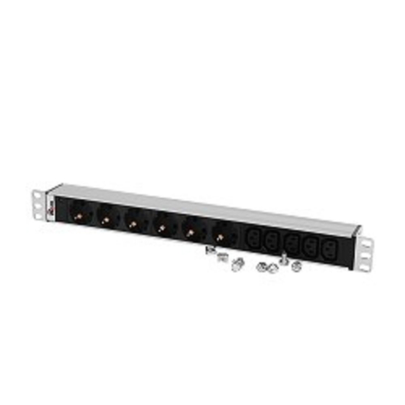 307528 ЦМО Блок розеток Rem-10 без шнура с инд., 6 Schuko, 5 IEC 60320 C13, вход IEC 60320 C14, 10A, алюм., 19" (R-10-6S-5C13-I-440-Z)