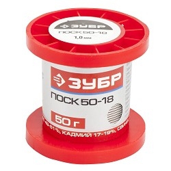 403064 ЗУБР Припой, ПОСК 50-18, специальный легкоплавкий с кадмием, проволока, 50гр, 1мм [55454-050-10]