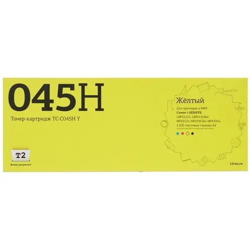 500864 T2 Cartridge 045H Y Картридж TC-C045H Y для Canon i-SENSYS LBP611Cn/613Cdw/MF631Cn/633Cdw/635Cx (2200 стр.) Желтый, с чипом