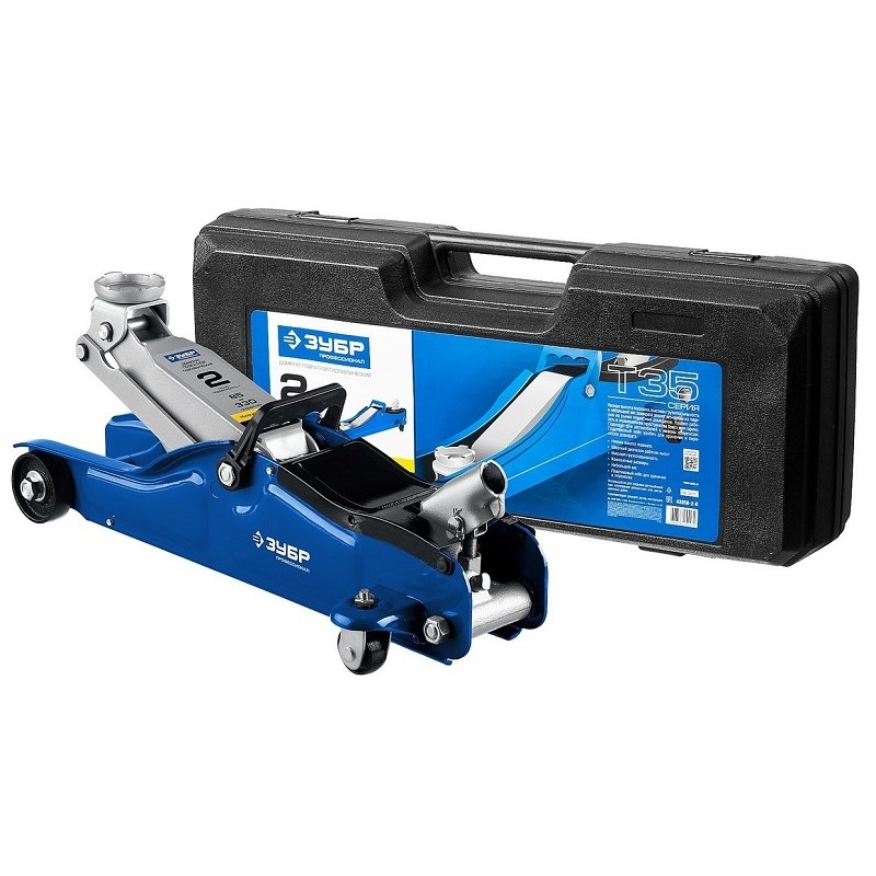 656415 ЗУБР Профессионал Домкрат гидравлический подкатной T35, 2т, 85-330мм, в кейсе, [43056-2-K]