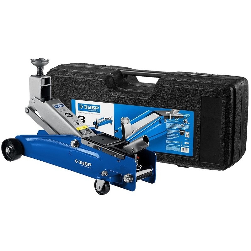 405690 ЗУБР Профессионал Домкрат гидравлический подкатной T77, 3т, 192-533мм, в кейсе, [43055-3-K]