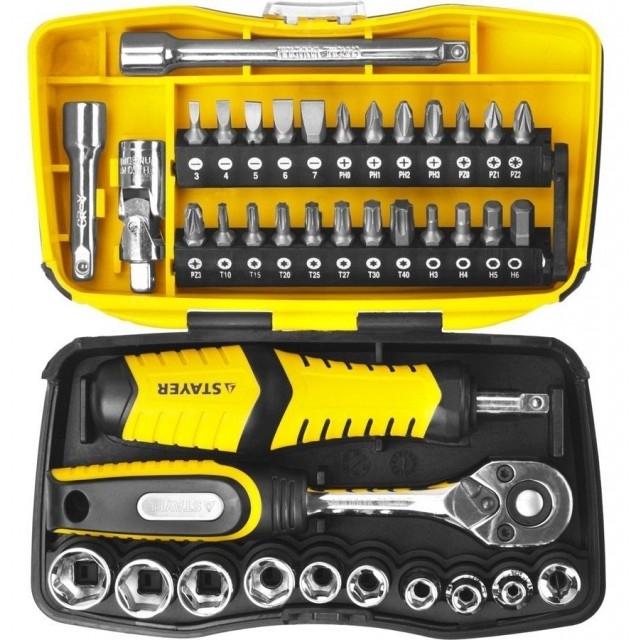 459740 Набор STAYER "PROFESSIONAL": Биты и торцовые головки с трещеткой и воротком, 39 предметов [25135-H39]