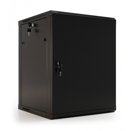 737759 Hyperline TWB-0645-SR-RAL9004 Шкаф настенный 19-дюймовый (19"), 6U, 367x 600х 450мм, металлическая передняя дверь с замком, две боковые панели, цвет черный (RAL 9004) (разобранный)