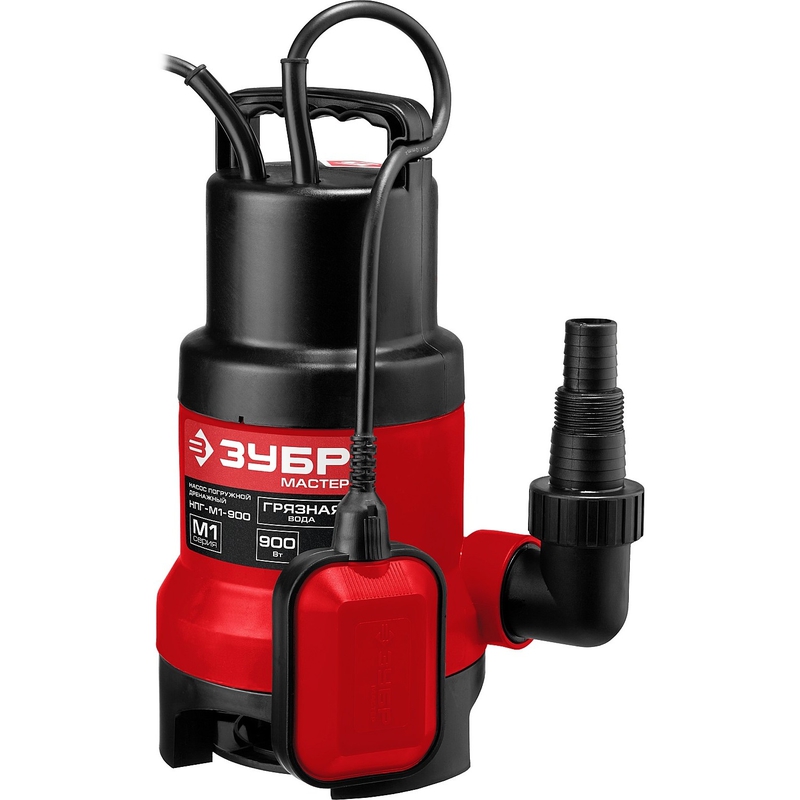 038788 ЗУБР [НПГ-М1-900] Насос М1 погружной { дренажн. для грязн воды (d частиц до 35 мм), 900 Вт, пропускн способность 230л/мин, напор 9 м, провод 7 м }