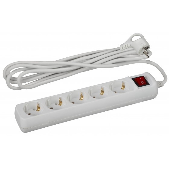 953701 ЭРА Б0028382 Удлинитель U-5es-3m-3x1 с заземлением с выключателем 5 гнезд 3 м {полипропилен, 3х1 мм2}