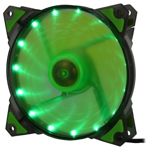 950868 CROWN Вентилятор для компьютерного корпуса CMCF-12025S-1222 (120*120*25мм;Зелёный 16LED;1500 об/мин;35CFM;20Дб;Подшипник скольжения;3pin+MOLEX(папа-мама) 40+10см)