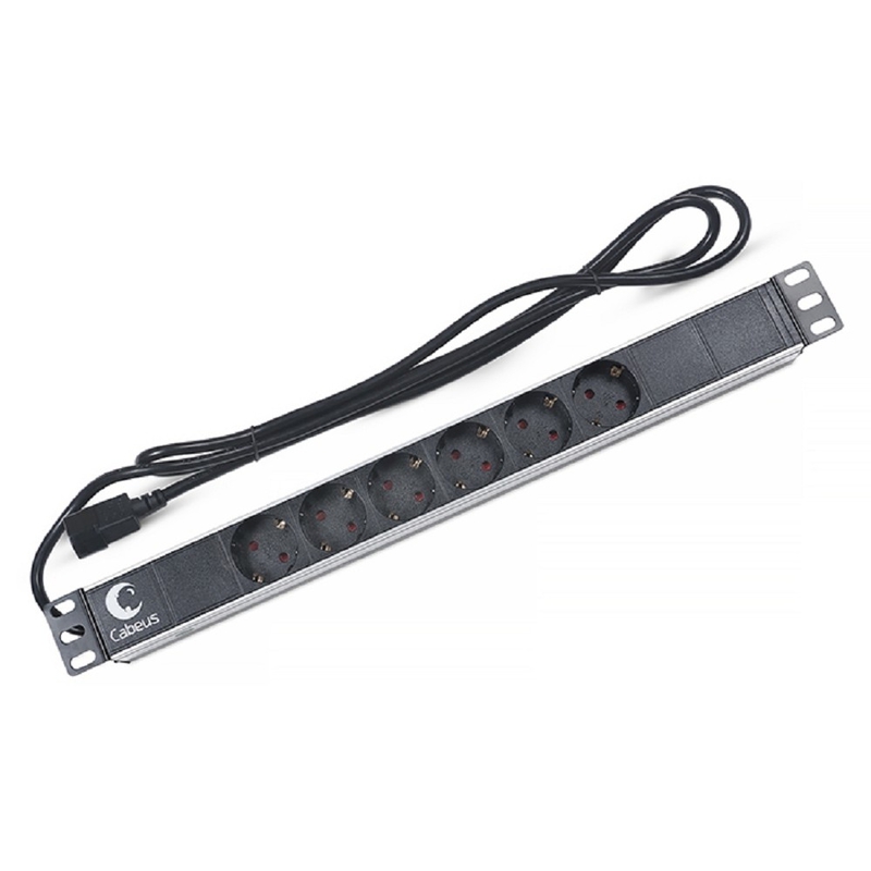 533412 Cabeus PDU-6P-2IEC Блок евророзеток для 19" шкафов, горизонтальный, 6 розеток, 10 A, без выключателя, алюминиевый корпус, шнур 2 м, вилка IEC 320 C14