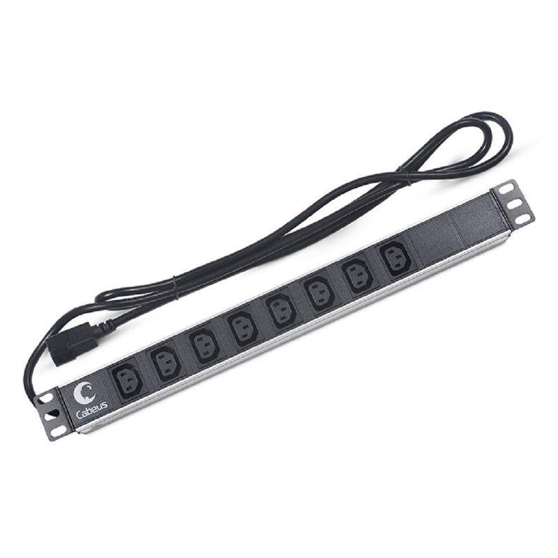 045468 Cabeus PDU-8I-2IEC Блок розеток для 19" шкафов, горизонтальный, 8 розеток IEC 320 C13, 10 A, без выключателя, алюминиевый корпус, шнур 2 м, вилка IEC 320 C14