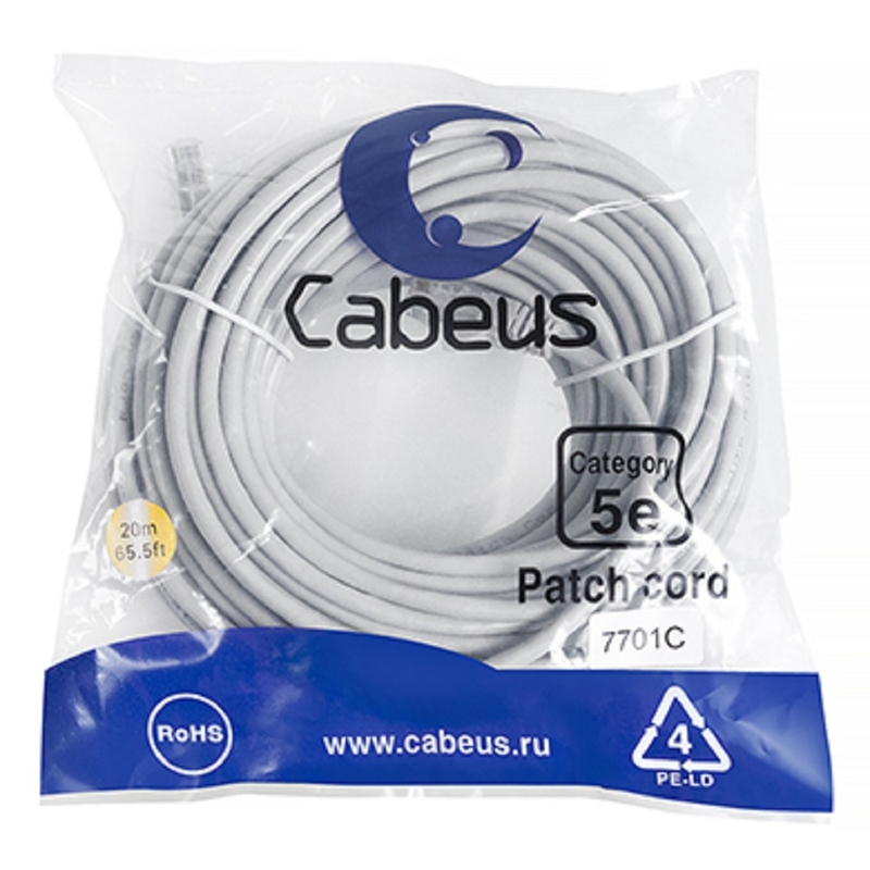 502133 Cabeus PC-UTP-RJ45-Cat.5e-20m Патч-корд U/UTP, категория 5е, 2xRJ45/8p8c, неэкранированный, серый, PVC, 20м