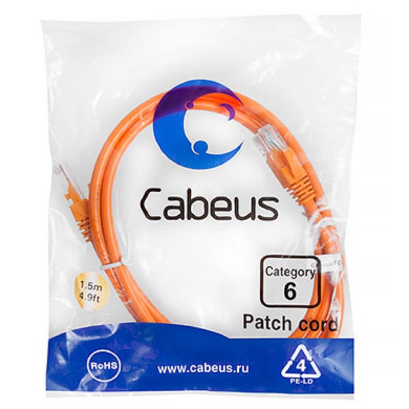 411800 Cabeus PC-UTP-RJ45-Cat.6-1.5m-OR Патч-корд U/UTP, категория 6, 2xRJ45/8p8c, неэкранированный, оранжевый, PVC, 1.5м