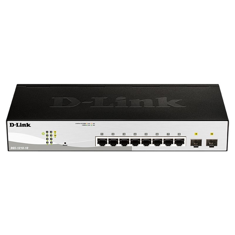 224542 D-Link DGS-1210-10/FL1A Управляемый коммутатор 2 уровня с 8 портами 10/100/1000Base-T и 2 портами 1000Base-X SFP