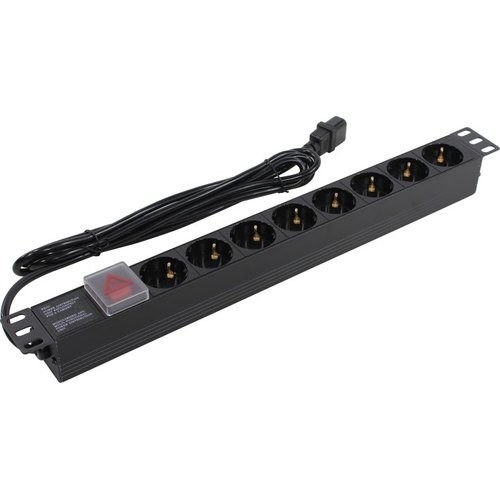 597124 Exegate EX280845RUS Блок розеток ExeGate ServerPro PDU-19H806 Al-8S-C14-3-SW, 19", 1U, алюм, 8Schuko, кабель с C14 3м