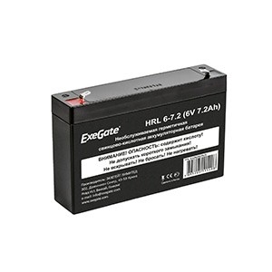 648715 Exegate EX282952RUS Exegate EX282952RUS Аккумуляторная батарея ExeGate HRL 6-7.2 (6V 7.2Ah), клеммы F1