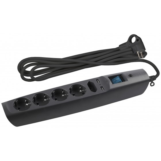 774014 ЭРА C0043326 Сетевой фильтр SFU-5es-2m-B черный {3x1 мм2, со шт, с выкл, 5гн + 2 USB - зарядки, 2м, защита от короткого замыкания, от перегрузки, от импульсных и высокочастнотных помех}
