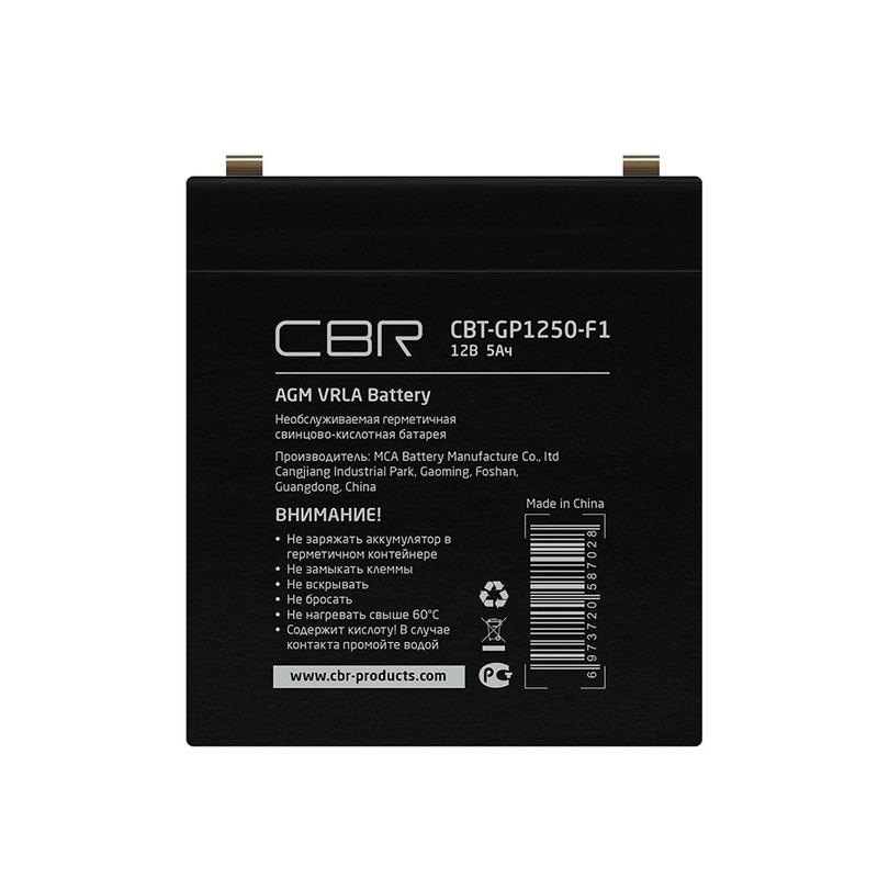 743188 CBR Аккумуляторная VRLA батарея CBT-GP1250-F1 (12В 5Ач), клеммы F1