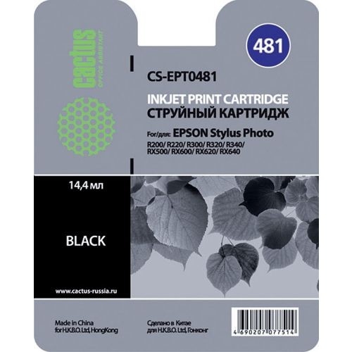 792490 Картридж струйный Cactus CS-EPT0481 черный (16мл) для Epson Stylus Photo R200/R220/R300/R320/R340/RX500/RX600/RX620/RX640
