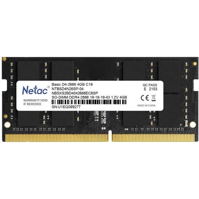 559654 Память SO-DIMM DDR4 4Gb PC21300 2666MHz CL19 Netac 1.2V (NTBSD4N26SP-04)