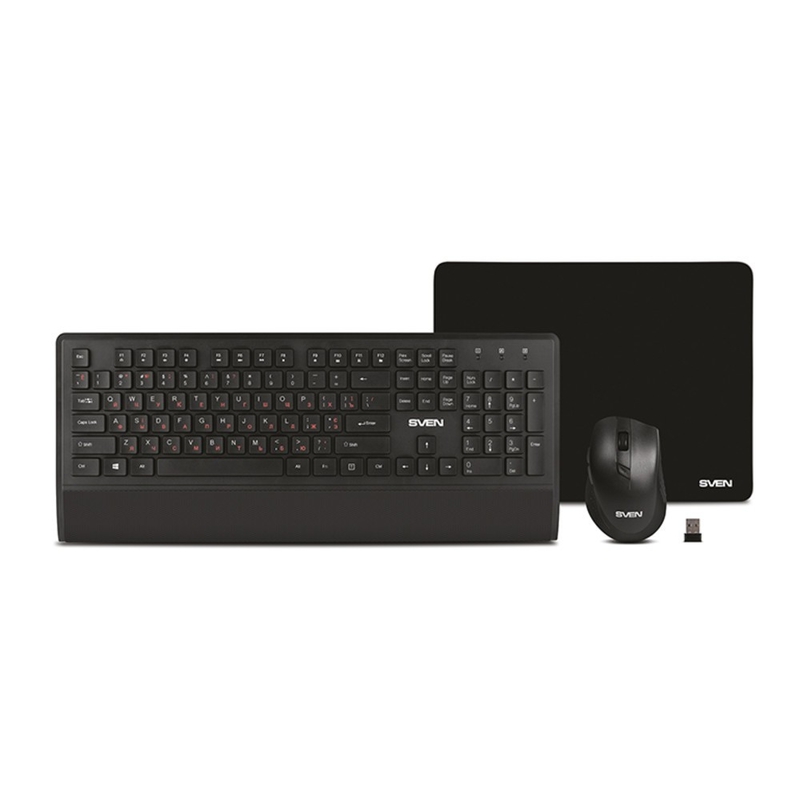 034124 Беспроводной набор клавиатура + мышь + коврик Sven KB-C3800W (104 кл.+12Fn, 800-1600DPI, 5+1 кл.)