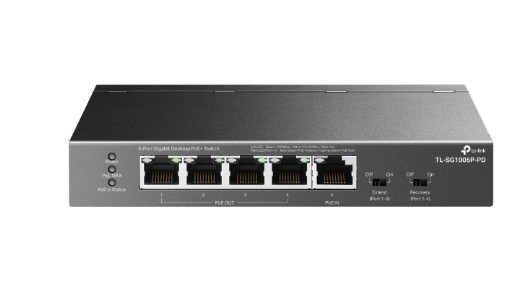 888990 TP-Link TL-SG1005P-PD Настольный коммутатор с 5 гигабитными портами (1 порт с входящим PoE++, 4 порта с исходящим PoE+)