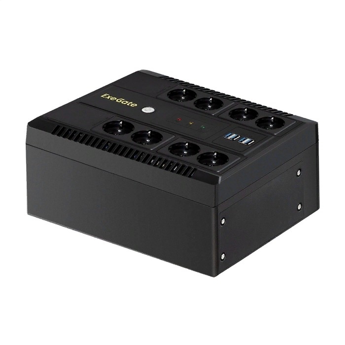 958266 Exegate EX295011RUS ИБП ExeGate NEO NNB-650.LED.AVR.8SH.CH <650VA/390W, LED, AVR, 8*Schuko, 4*USB-порта для зарядки, Black>