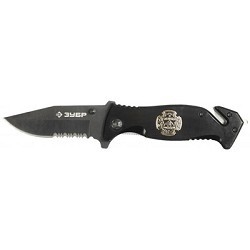 363947 Нож ЗУБР "ЭКСПЕРТ" СПАСАТЕЛЬ складной, серрейтор. заточка, наконечник д/стекол,резак,200мм/лезвие 90мм [47707_z01]